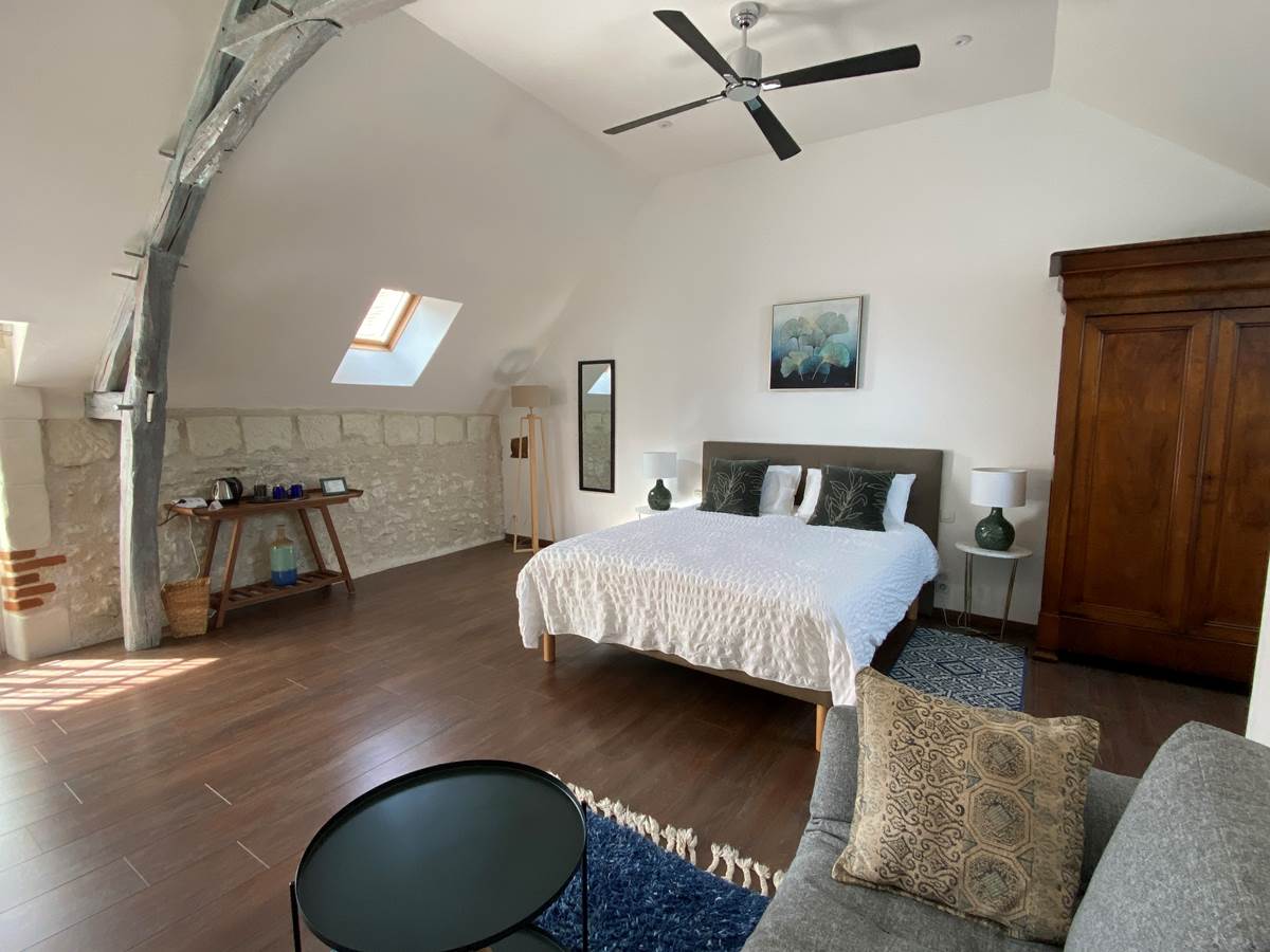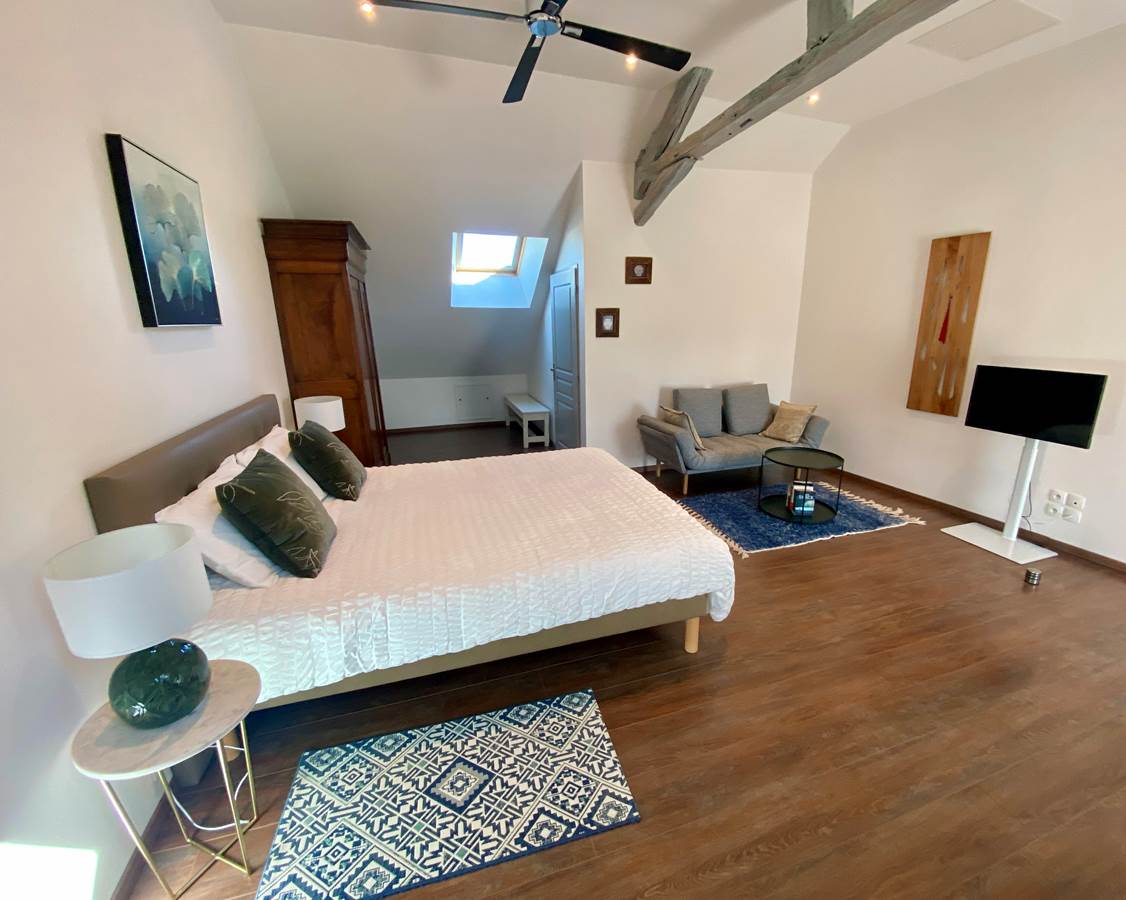 Located on the first floor of the main building, Piment Vert (30 sq. m) has been decorated in blue and green tones to create a harmonious and relaxing atmosphere.